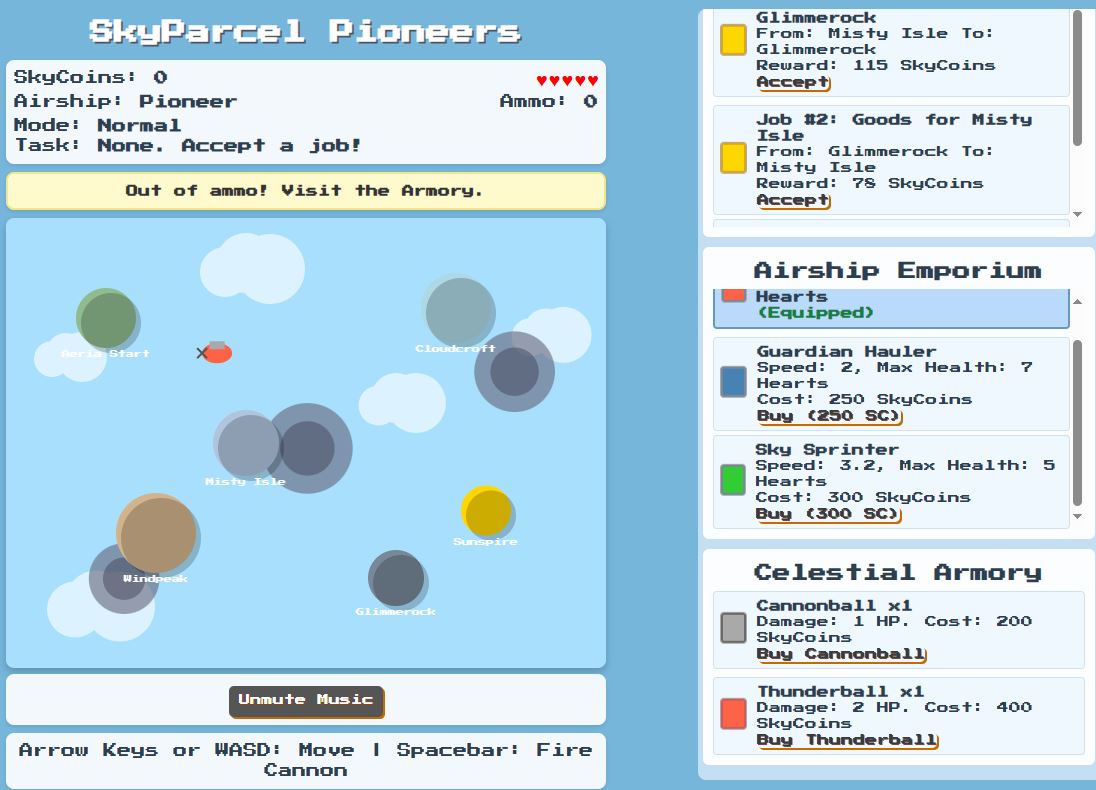 AirShip Delivery! is a delivery game based you delivering cargo from one Island to next. But beware, pirates scrouge these sky's, doge them, shoot them down, and get SkyCoins!